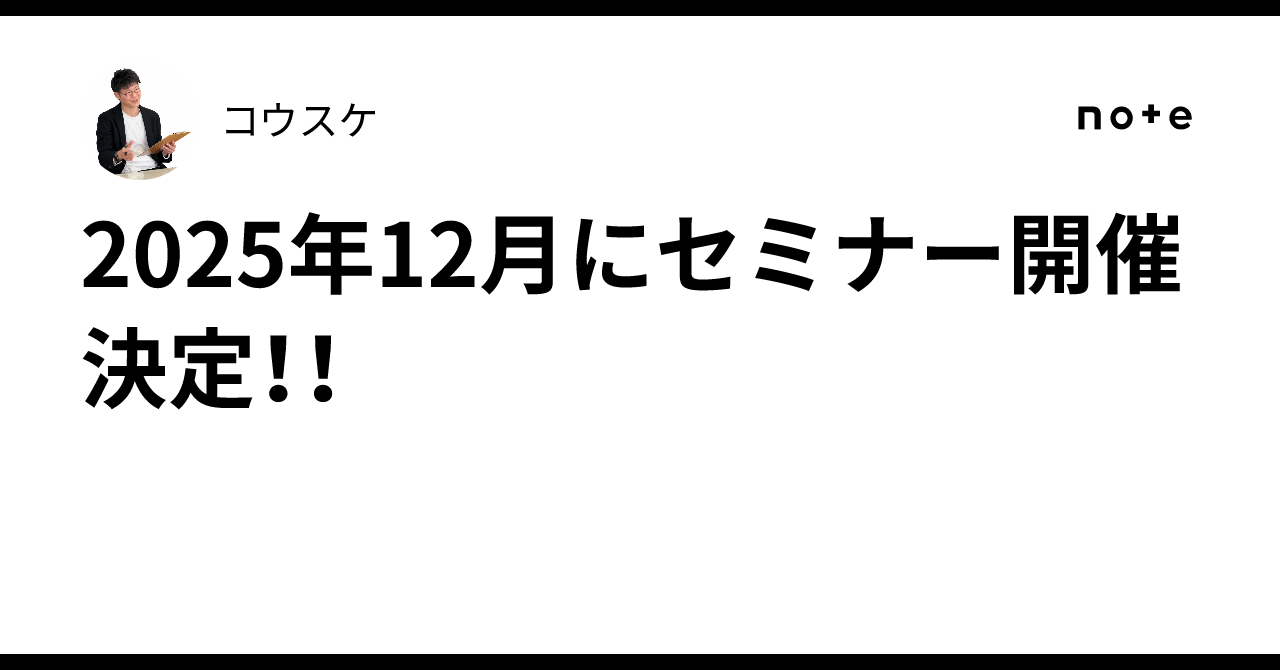 2025年12月にセミナー開催決定!!|コウスケ